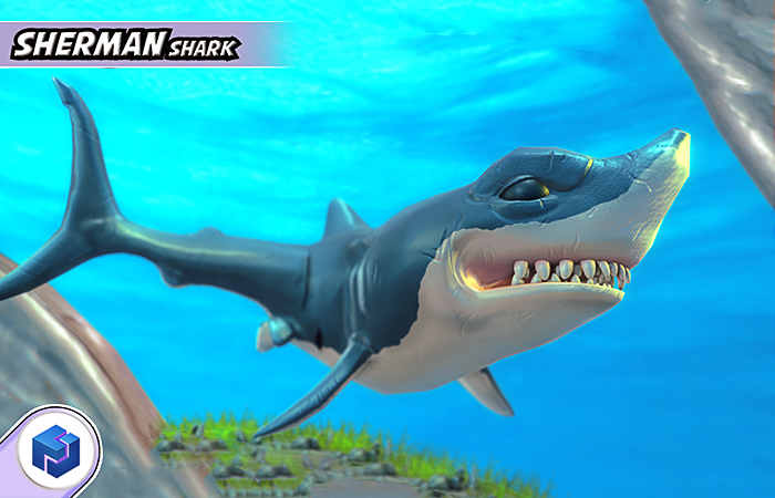 Big and hungry. Sherman is a great enemy to have in your ocean scene.