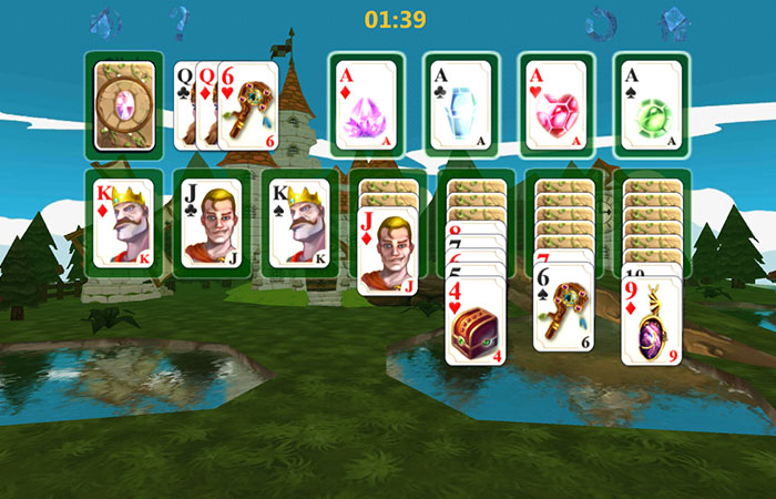 Enjoy playing classic Freecell today with a wonderful castle background and beautifully designed playing cards.
